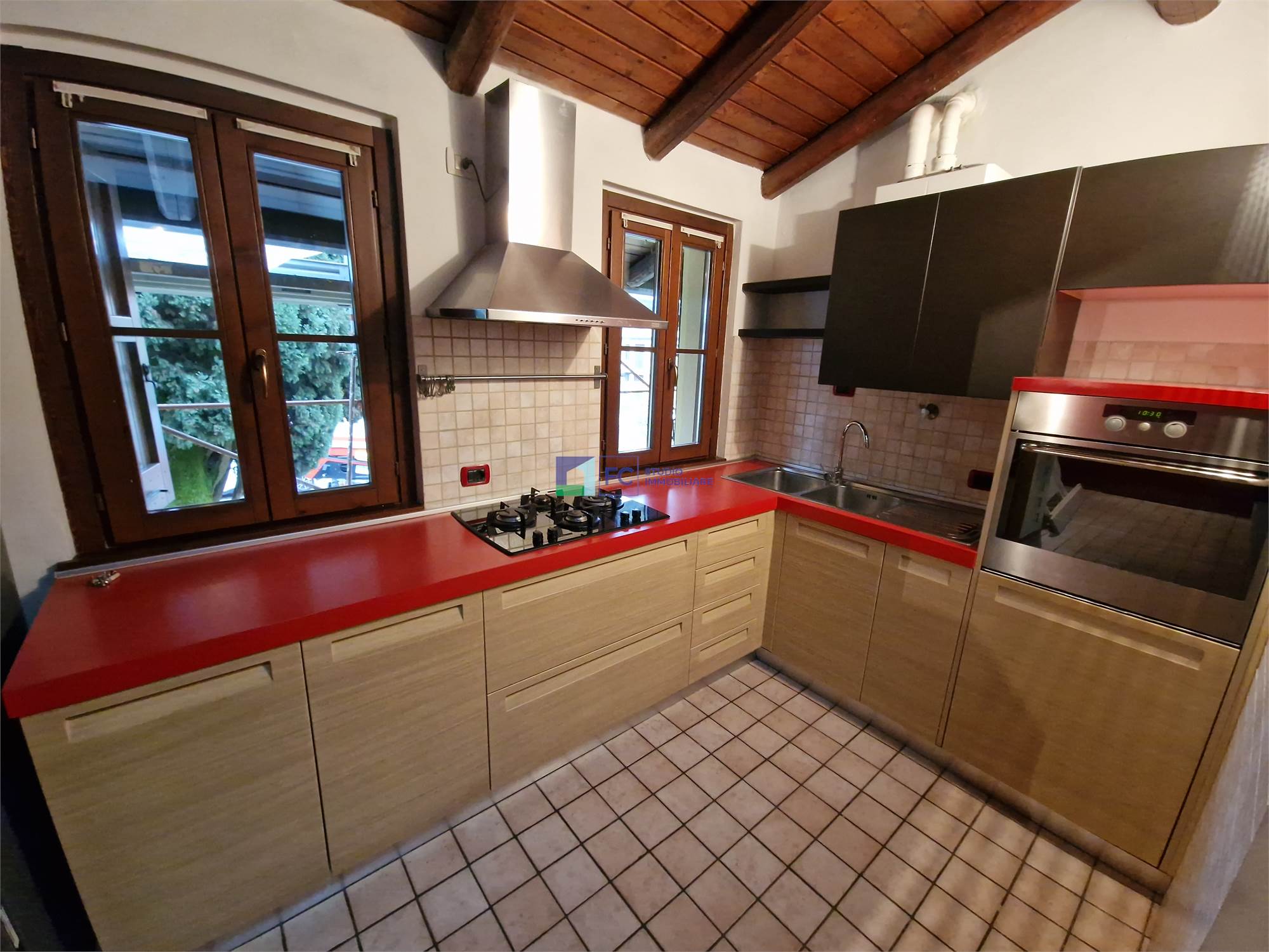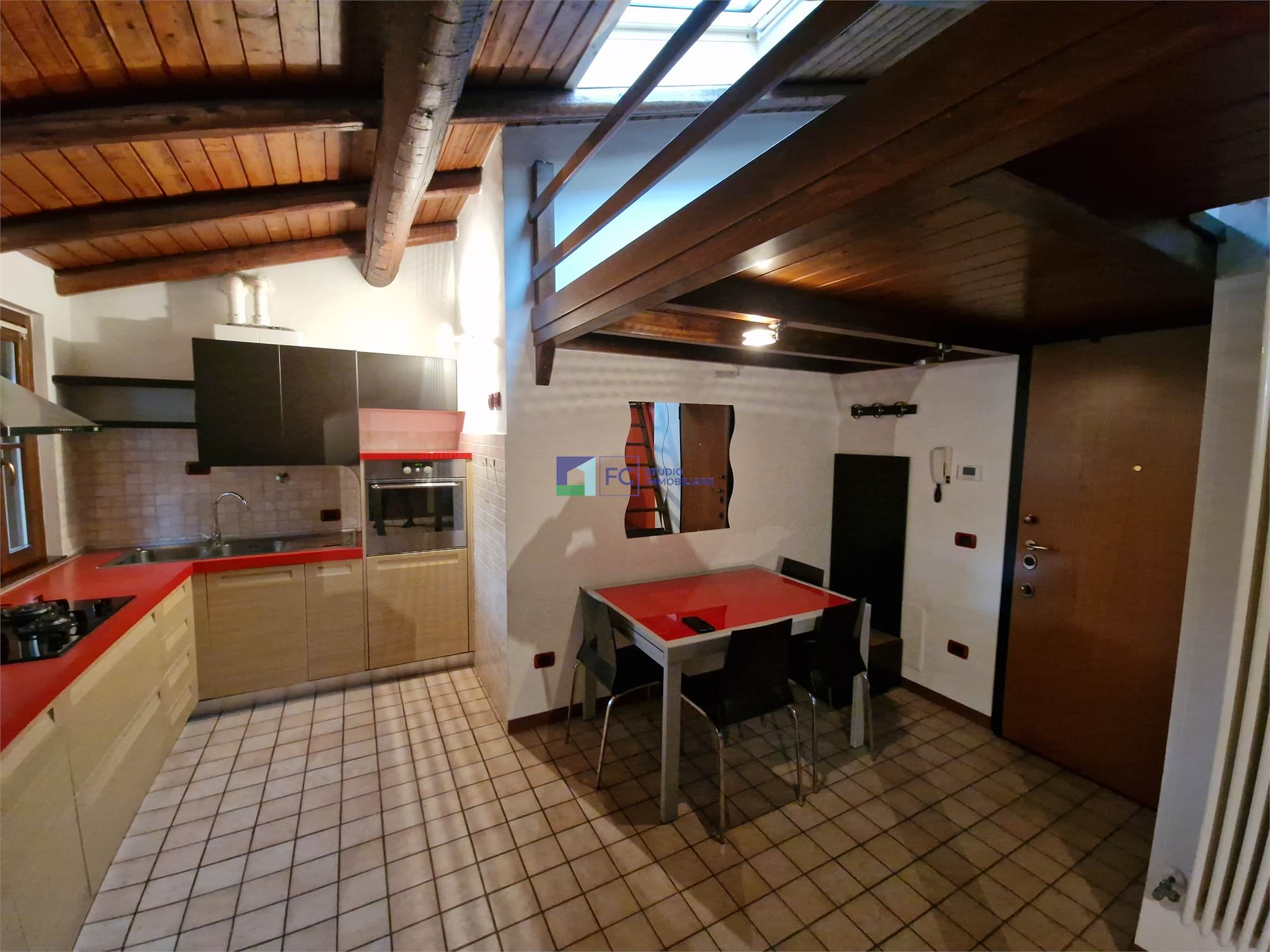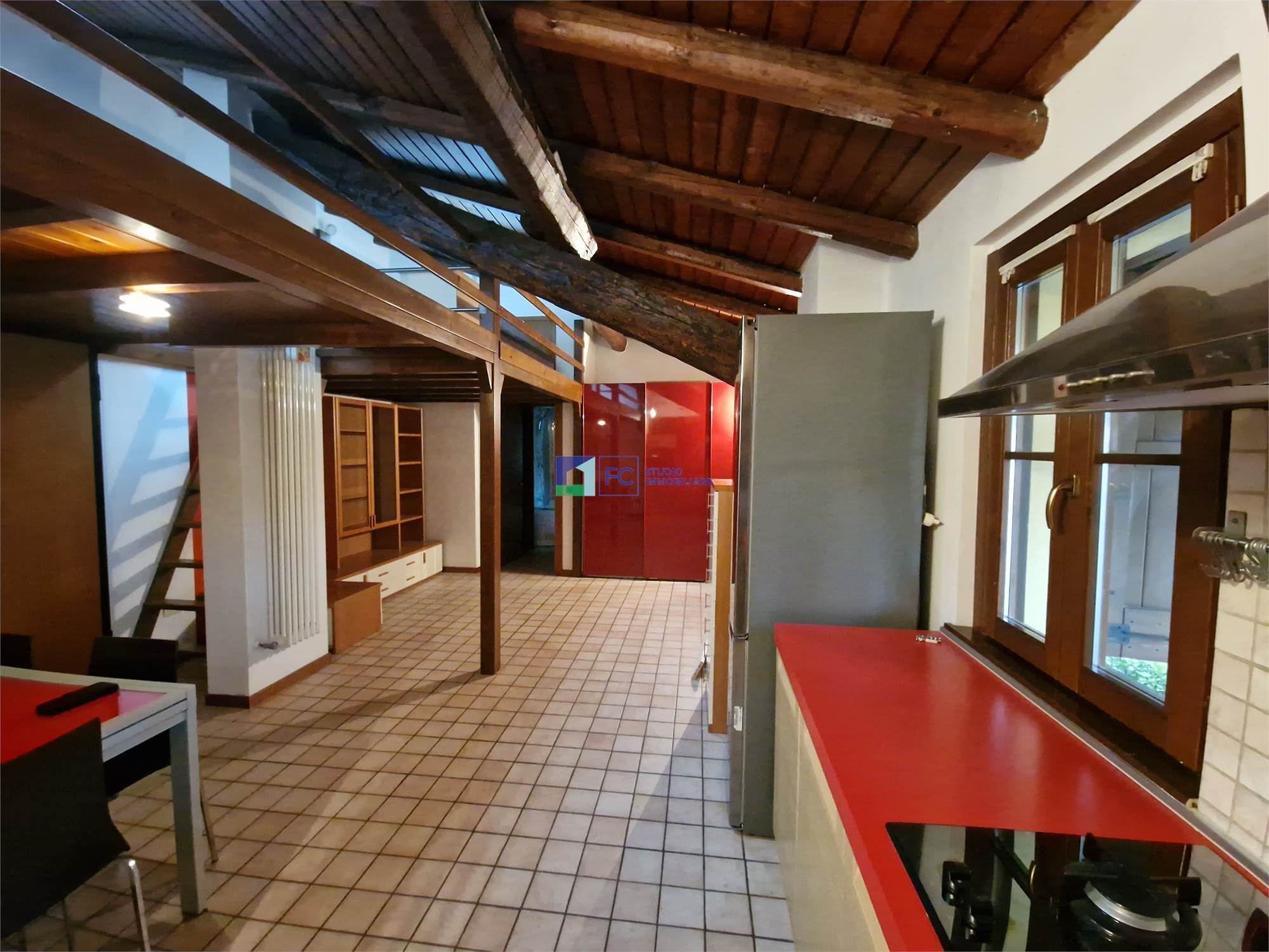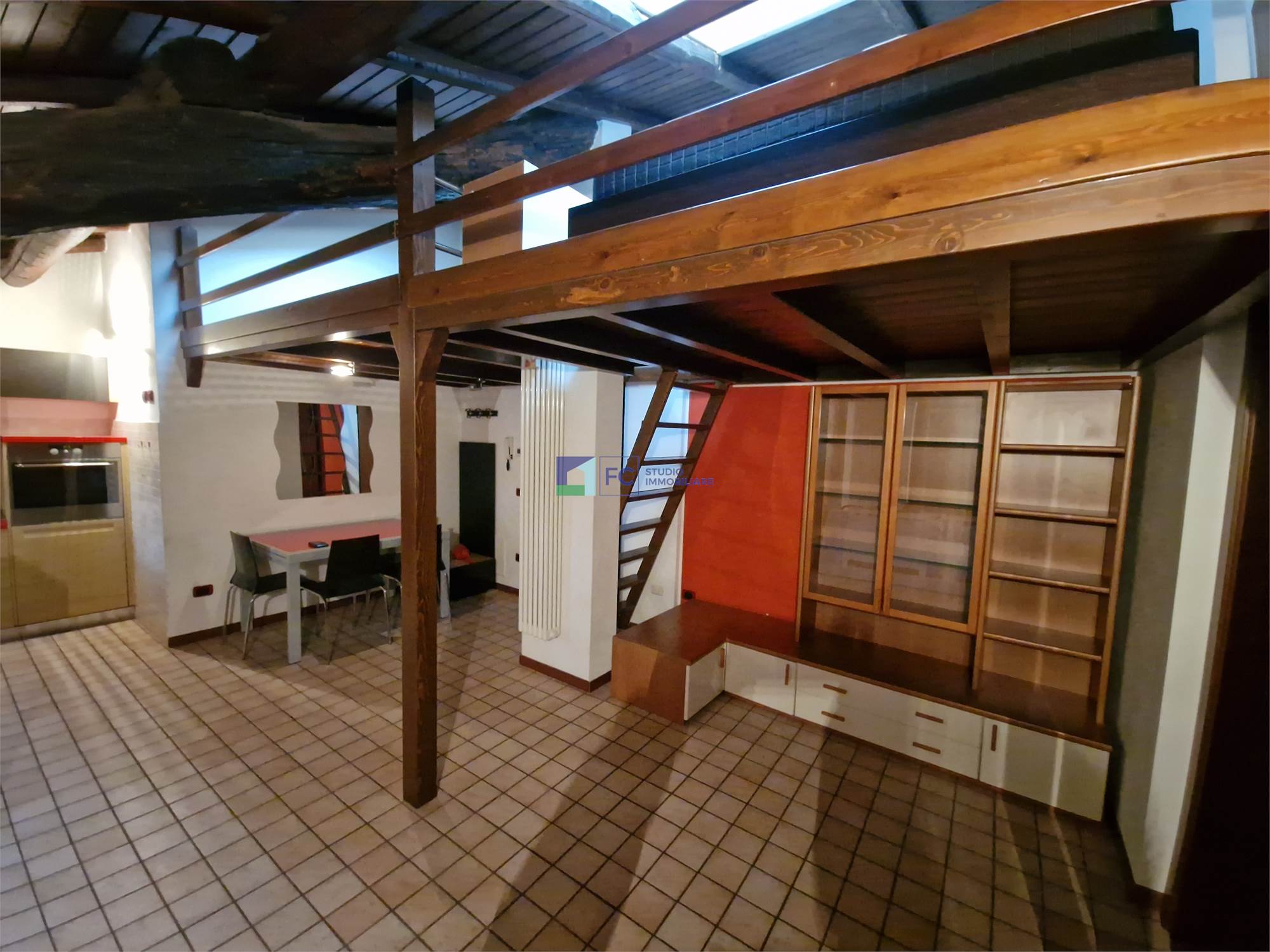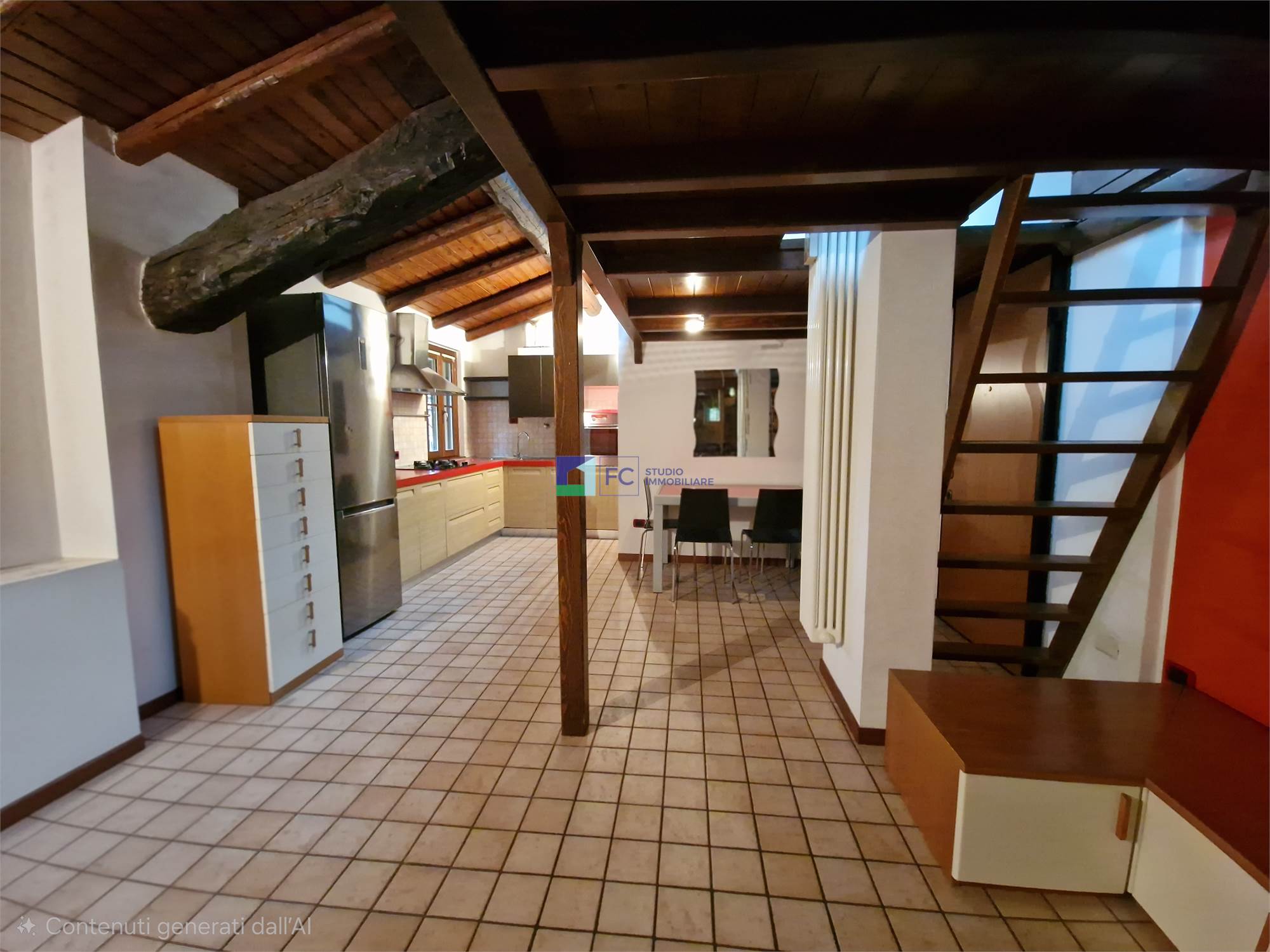 Monolocale arredato con travi a vista-Contesto condominiale rinnovato